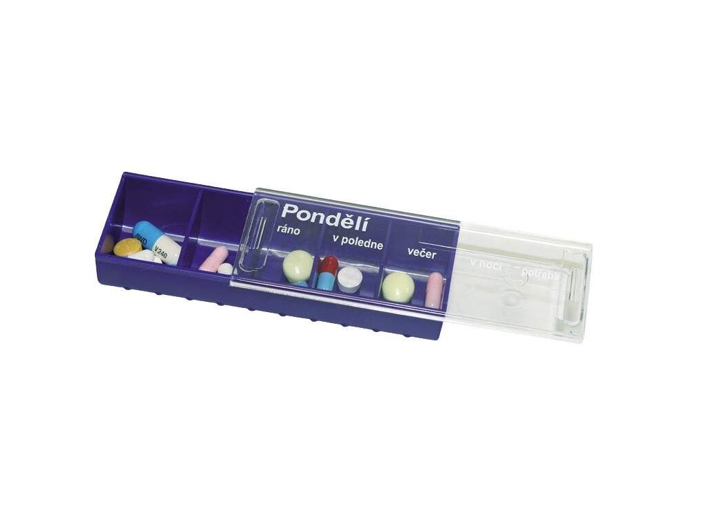 Výstupky na krabičce denního dávkovače umožňují snadnou manipulaci a zakulacený tvar snadné vybírání léků a lepší využití objemu. Tento tvar umožňuje rovněž podstatně účinnější údržbu. Postavíte-li dávkovač šikmo (všechny přihrádky přehlédnete jedním pohledem), snadno získáte přehled: tabletku jste užili nebo zapomněli užít. Podle statistických dat se většina léků podává ráno, proto je ranní přihrádka větší, než ty ostatní. K dispozici je také jedna přihrádka navíc pro případ potřeby. Celkový objem dávkovače je v porovnání se srovnatelnými dávkovači na léky větší. Jedinečná konstrukce mechanismu víčka umožňuje snadné plnění a vyjímání léků (víčko denního dávkovače lze sejmout), což ušetří mnoho času v podmínkách profesionálně poskytovaných služeb (zdravotní sestry, domovy pro seniory, pečovatelské služby). Možnost stohovat, což je důležité především v objektech, kde je poskytována profesionální péče (pečovatelská služba).